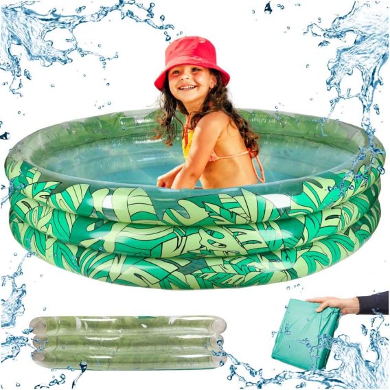 Dziecięcy basen ogrodowy o pięknej grafice w zielone liście