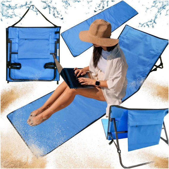 Mata plażowa składana z oparciem leżak składany 2w1 granatowy torba