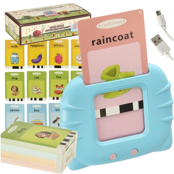 Zabawka edukacyjna czytnik do fiszek kart edukacyjnych do nauki słówek z języka angielskiego 112 kart niebieski